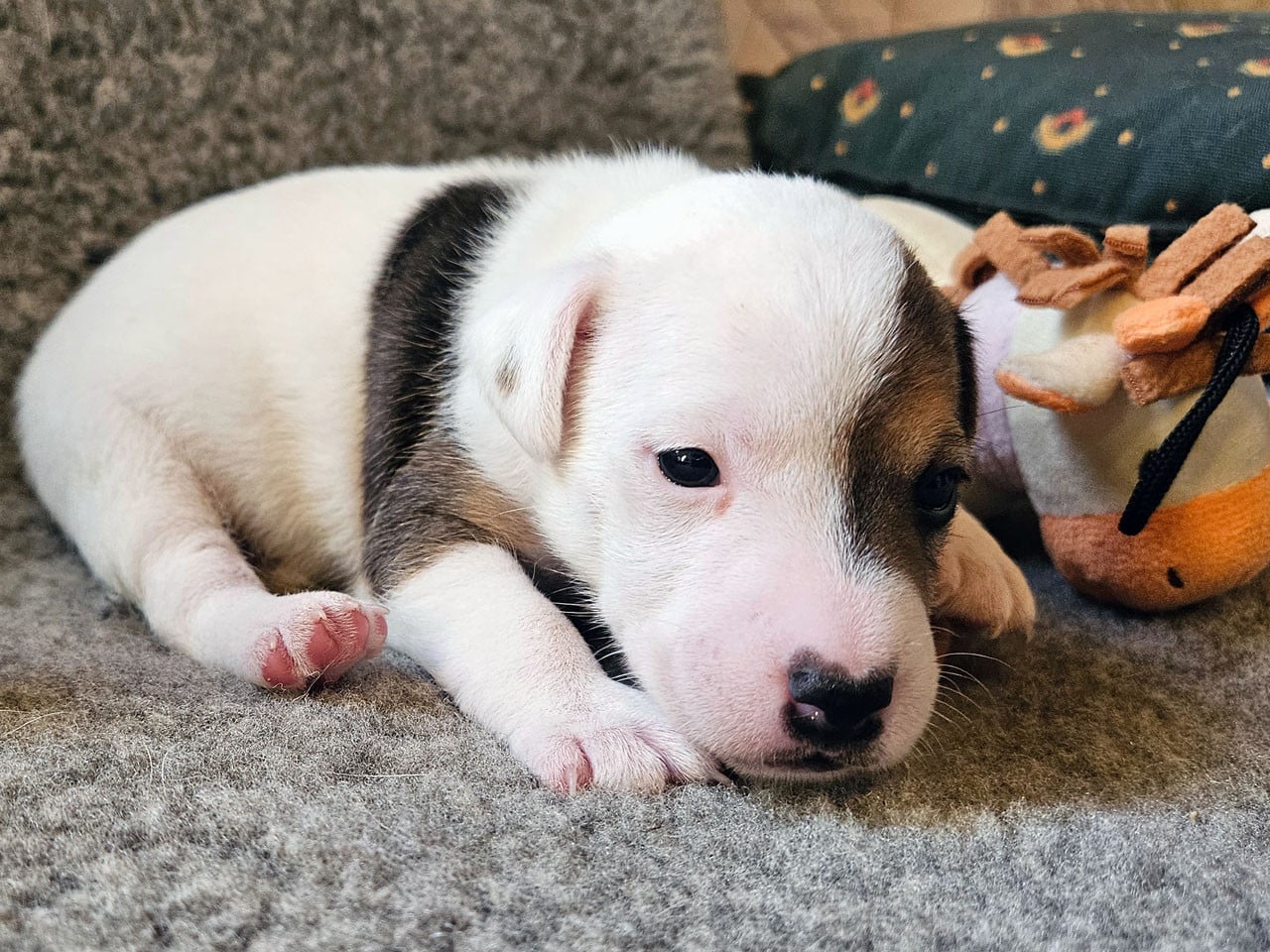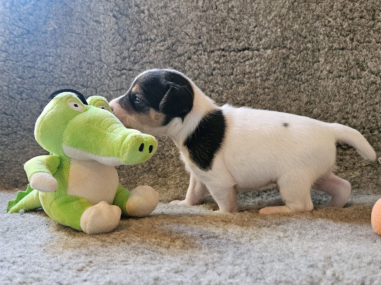 Les Bébés de Tippy et Thadéus sont nés le 28/02/01/2026 ils seront disponibles à partir du 29 Avril 2026 Il y a 2 mâles et 1 femelle. Ce sont des Parson Russell Terrier, nés le 28 Février 2026 ils seront disponibles à partir du 29 Avril 2026. Les chiots seront vaccinés et identifiés à 8 semaines puis je les garde 3 jours afin de leur éviter tout stress supplémentaire après le vaccin. Ils ne seront pas inscrits au LOF, Thadéus n'a pas été présenté à la confirmation car c'est un petit chien qui est revenu à la maison après des mésaventures. Il ne devait pas saillir, mais il partage le parc avec Tippy. Je les ai séparés visiblement trop trop tard quand Tippy a commencé ses chaleurs. Ils partiront avec un passeport européen, leur primo vaccination, un document d'information sur les besoins des chiots, un bordereau de livraison et une facture, un traitement contre tiques et puces et un kit chiot Royal Canin. Ils sont vermifugés tous les quinze jours depuis leur naissance. Je fais de nouvelles photos tous les Jeudi. Vous pouvez les voir tous les jours de 14h à 18h mais uniquement sur rendez vous. Je ne fais de réservation qu'après au moins un contact téléphonique, vous pouvez m'appeler tous les jours de 9h à 19h au 06 47 57 14 09 L'identification de la maman Tippy du Rallye Gascon Normand est 250 268780109569, en 2025 nous avons fait 5 portées, c'est la cinquième cette année. C'est la troisième portée de Tippy qui avait 4 ans à la mise bas.